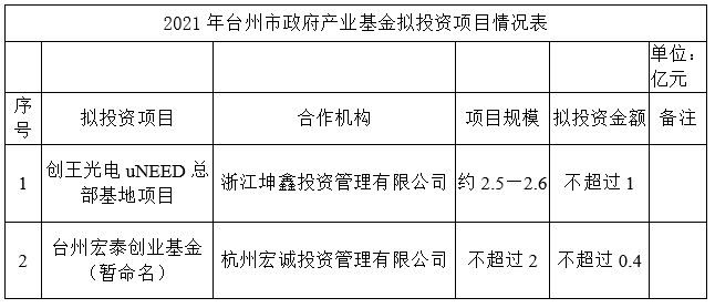 关于台州市政府产业基金投资项目的公示