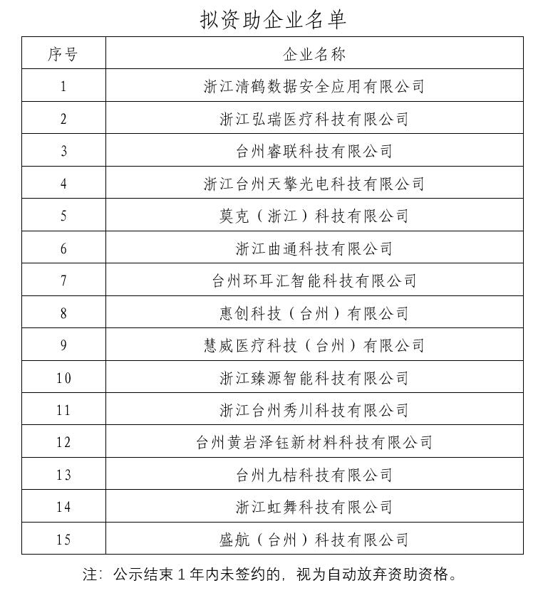 根据《台州市科创基金支持人才创业实施办法》(台人才领〔2023〕44号)的规定,经天使梦想基金管理委员会审议,台州市天使梦想基金拟对15家人才创业项目进行资助,现将名单予以公示。如有意见,可向市科创集团反映。