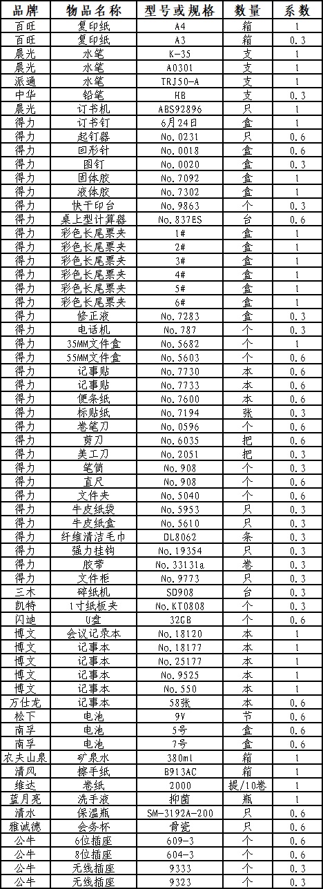 符合采购需求、质量和服务相等的前提下,采用价格比选,所有清单物品单价乘以系数再相加汇总,价低者为成交供应商。