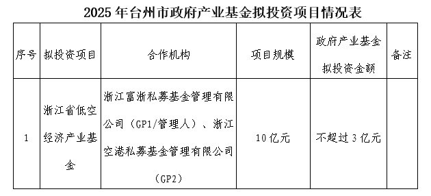 根据《台州市政府产业基金管理办法》(台财企发〔2021〕6号)等有关规定,为充分发挥政府产业基金引领作用,台州市政府产业基金拟组建非定向基金投向低空领域,已由betway西汉姆联官网决策委员会(基金管理委员会)审议通过,现予以公示: