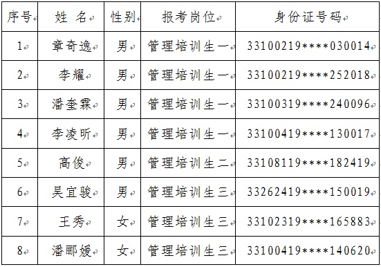 经公开报名、笔试、面试、体检和考察等程序,确定以下人员为拟录用人员,现公示如下: