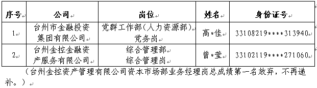根据2023年4月27日发布的《betway西汉姆联官网及所属企业公开招聘7名工作人员的公告》要求,经公开报名、面试、体检和考察等程序,确定以下人员为拟录用人员,现公示如下: