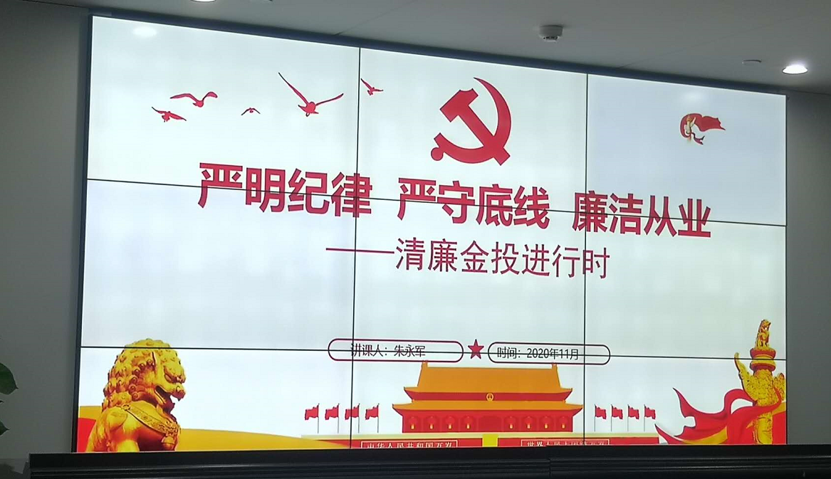 11月2日晚,集团纪委书记朱永军以“严明纪律 严守底线 廉洁从业”为主题为集团全体干部职工讲党课。