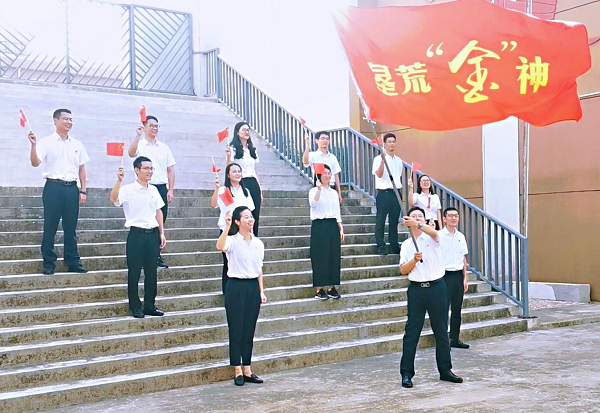 “五星红旗,你是我的骄傲;五星红旗,我为你自豪……”在凤尾山下、在垦荒碑前、在东海岸边,全体党员同志齐声合唱《红旗飘飘》,用最深情的歌声表达对祖国的热爱,献礼祖国72周年华诞。